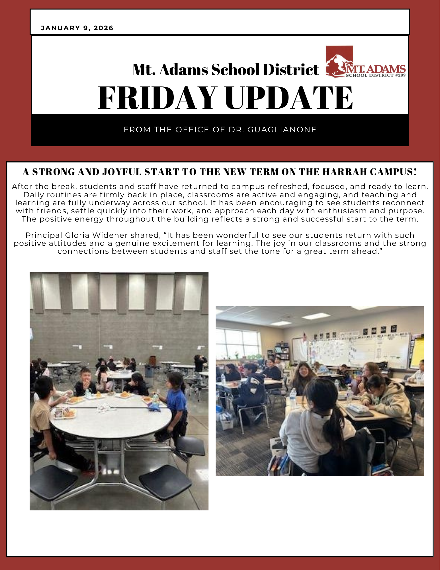 As we head into Winter Break, we want to take a moment to wish all of our Mt. Adams students, families, and staff a safe and wonderful holiday. No School December 22nd-January 2nd. Classes resume J...